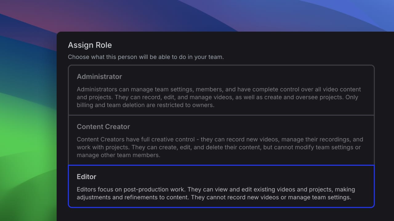 An AI voiceover tutorial creator that gives you control and access with precision. Assign roles like Admin, Creator, or Editor and keep every project safeguarded.
