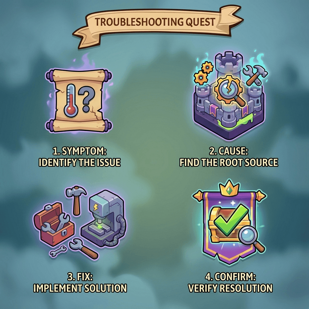 Symptom → Cause → Fix → Confirm
