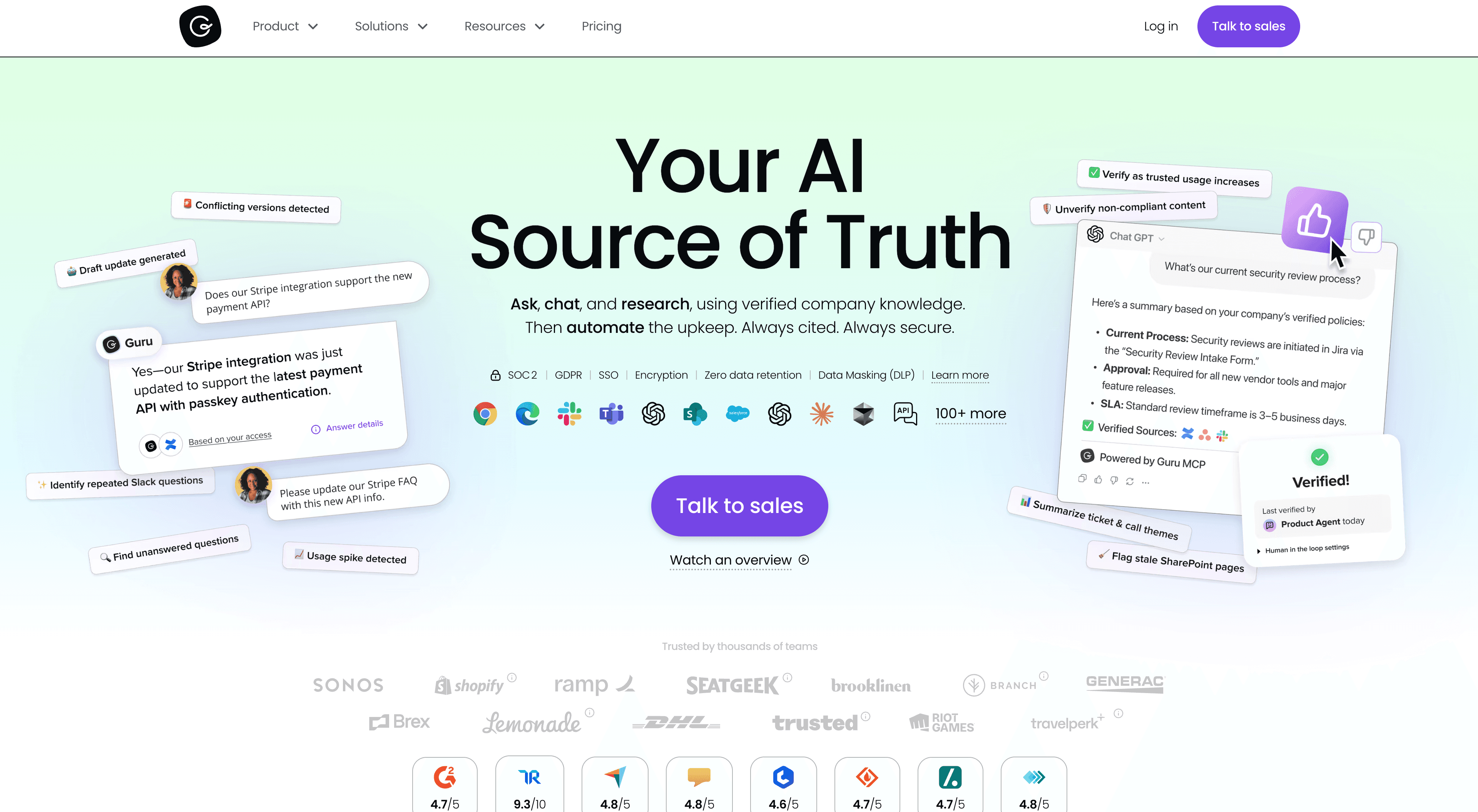 3. Guru: best for support teams who need answers surfaced in context