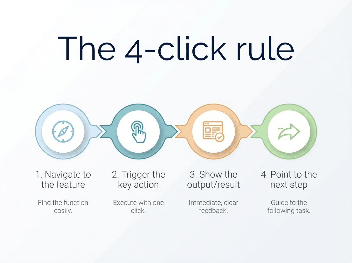 Aim for a launch demo that delivers value within the first four clicks:
