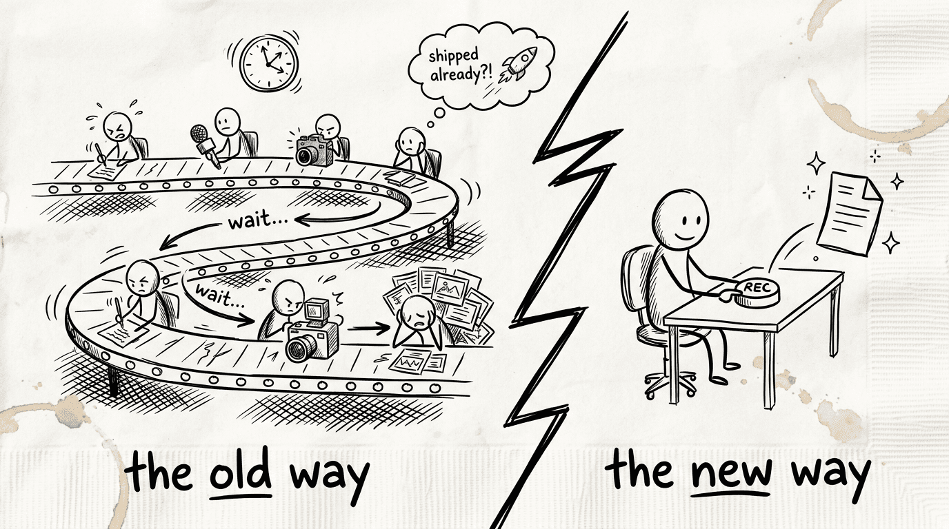 Traditional training documentation involves multiple steps: planning the content, writing a script, recording a screen walkthrough, narrating it (or hiring someone to), editing the video, writing the accompanying article, adding screenshots, formatting for the destination platform, and publishing. Each step has a handoff. Each handoff has a delay.