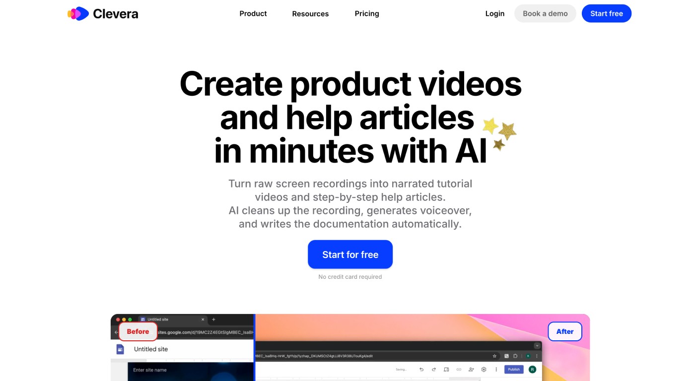 Clevera's ability to act as an ai video tutorial maker means you don't need a professional microphone or a quiet room. You record your task, and the AI handles the narration and the tutorial documentation. Combined with LiveSync, which keeps your videos updated as your product evolves, it is the only tool on this list built specifically to scale a product's knowledge base.