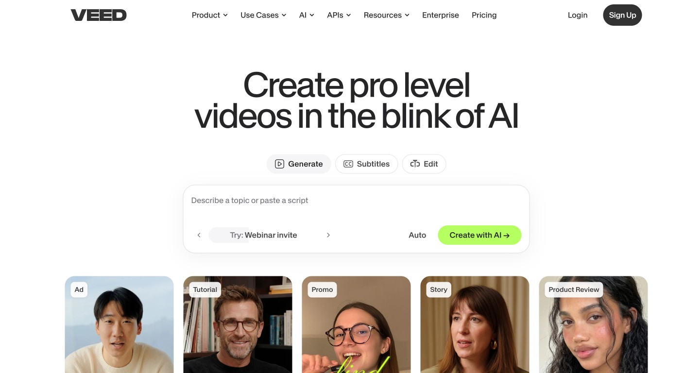 VEED is a massive suite of tools. If you need Descript-style captioning and "text-based video editing" but prefer working in a Chrome tab rather than a desktop app, VEED is the strongest contender.