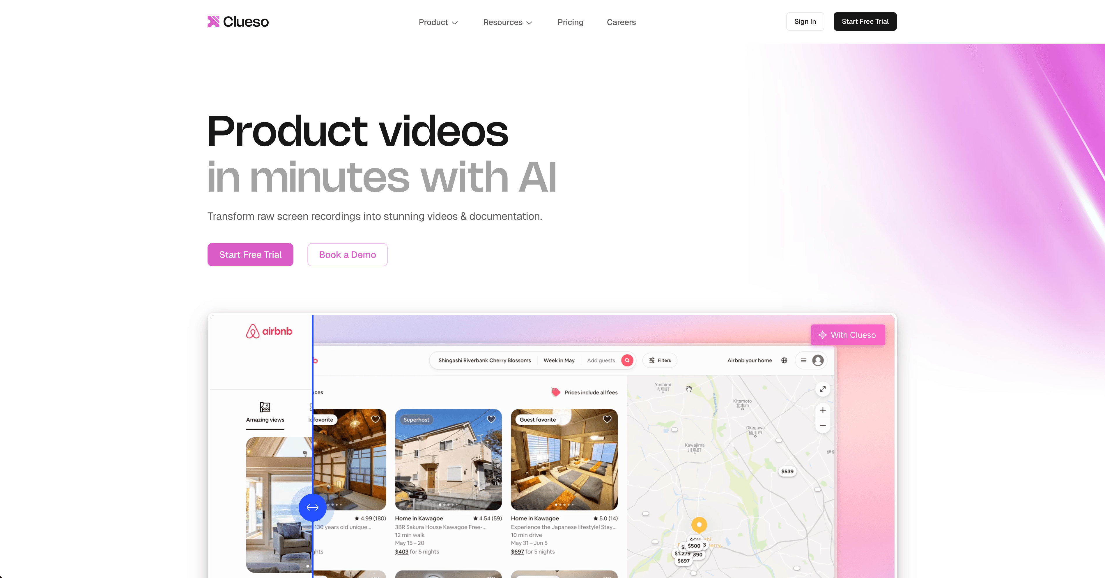 No live video updates: Clueso produces a static video file. When your product UI changes, you start over. There's no mechanism for updating a published video in place.