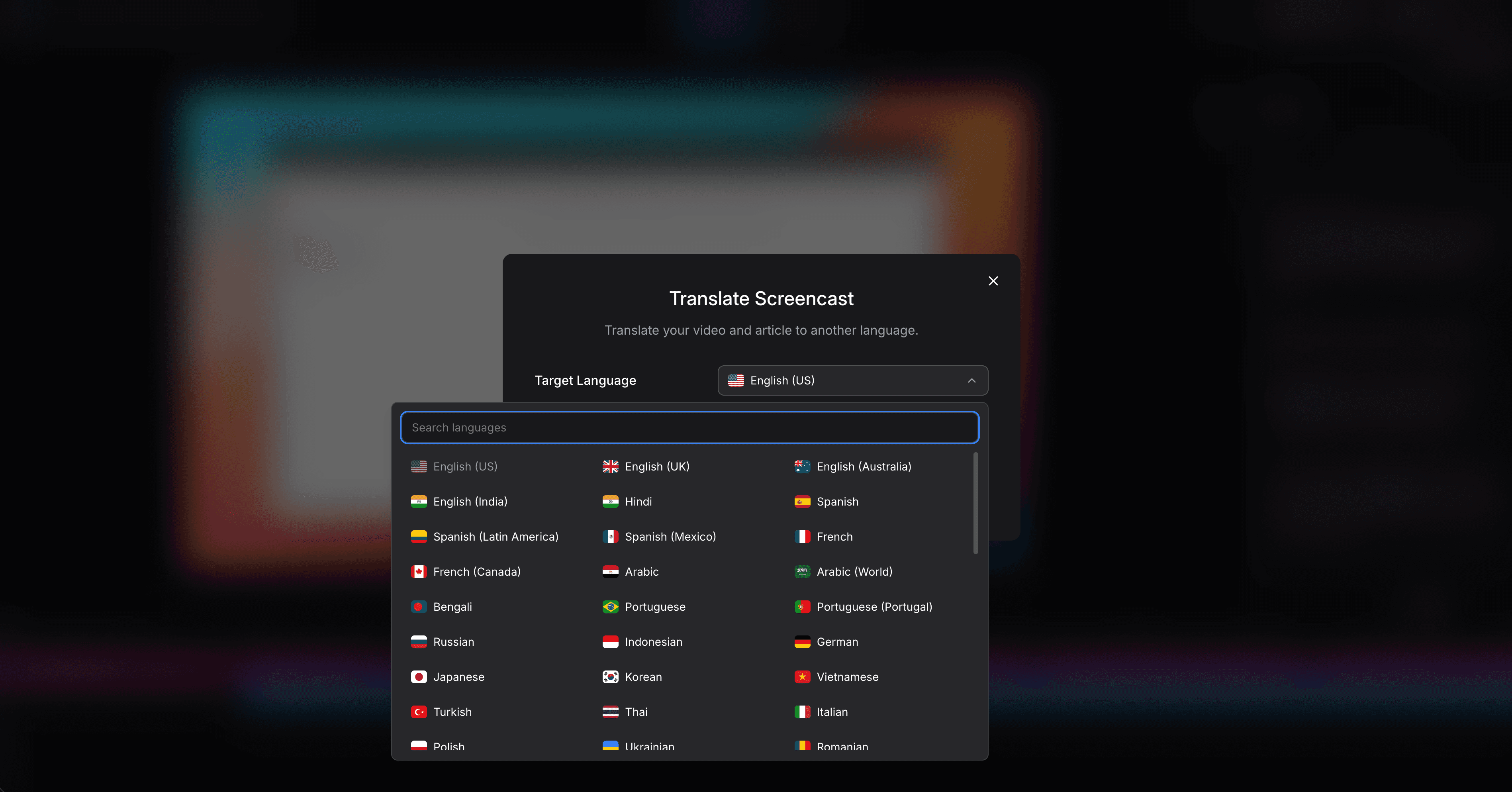 70+ language translation: translate both the video narration and written article into 70+ languages with one click. Clueso's language support is more limited.