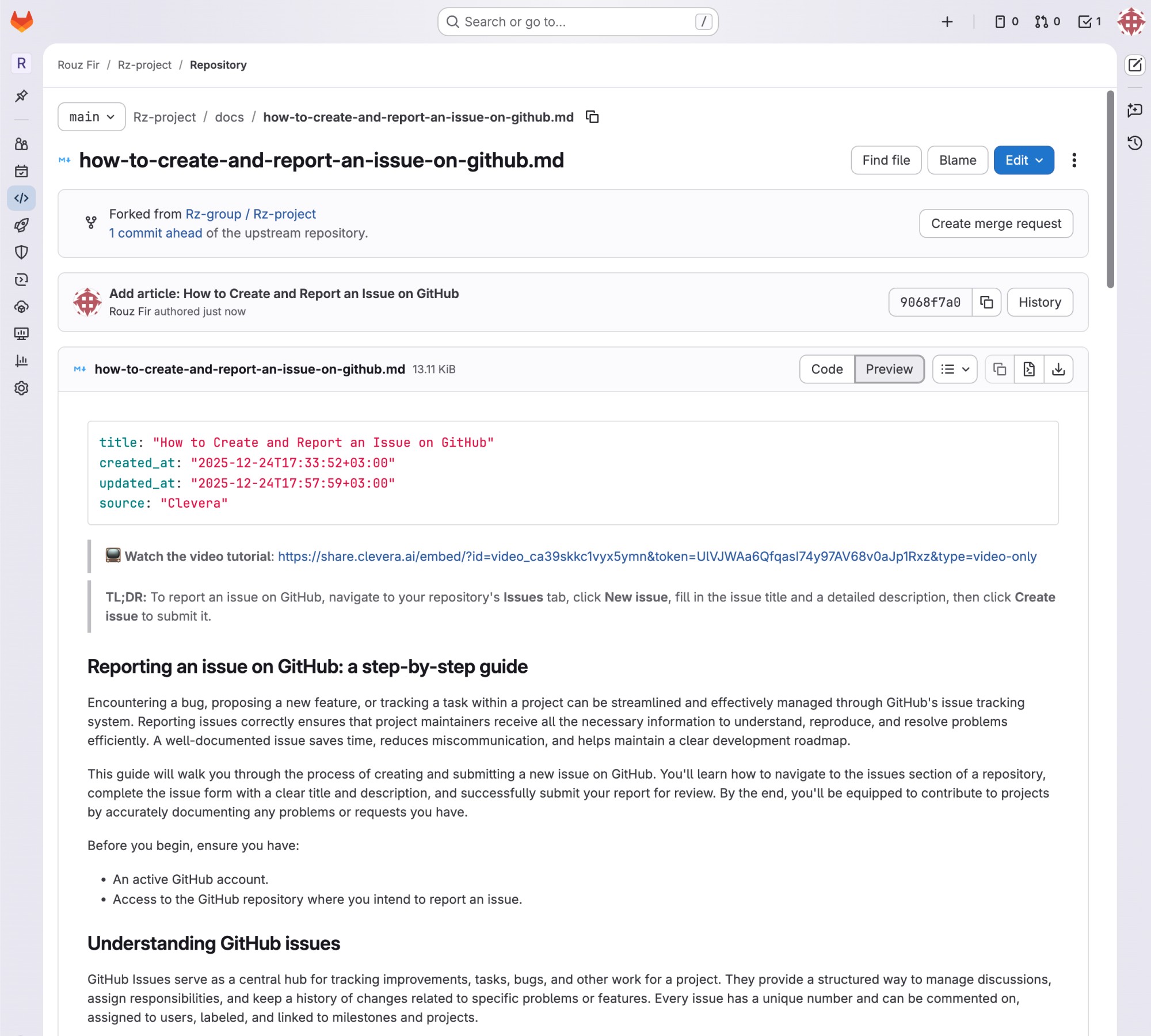 Real examples of how teams use Clevera to publish clear, video-first guides in GitLab, in minutes