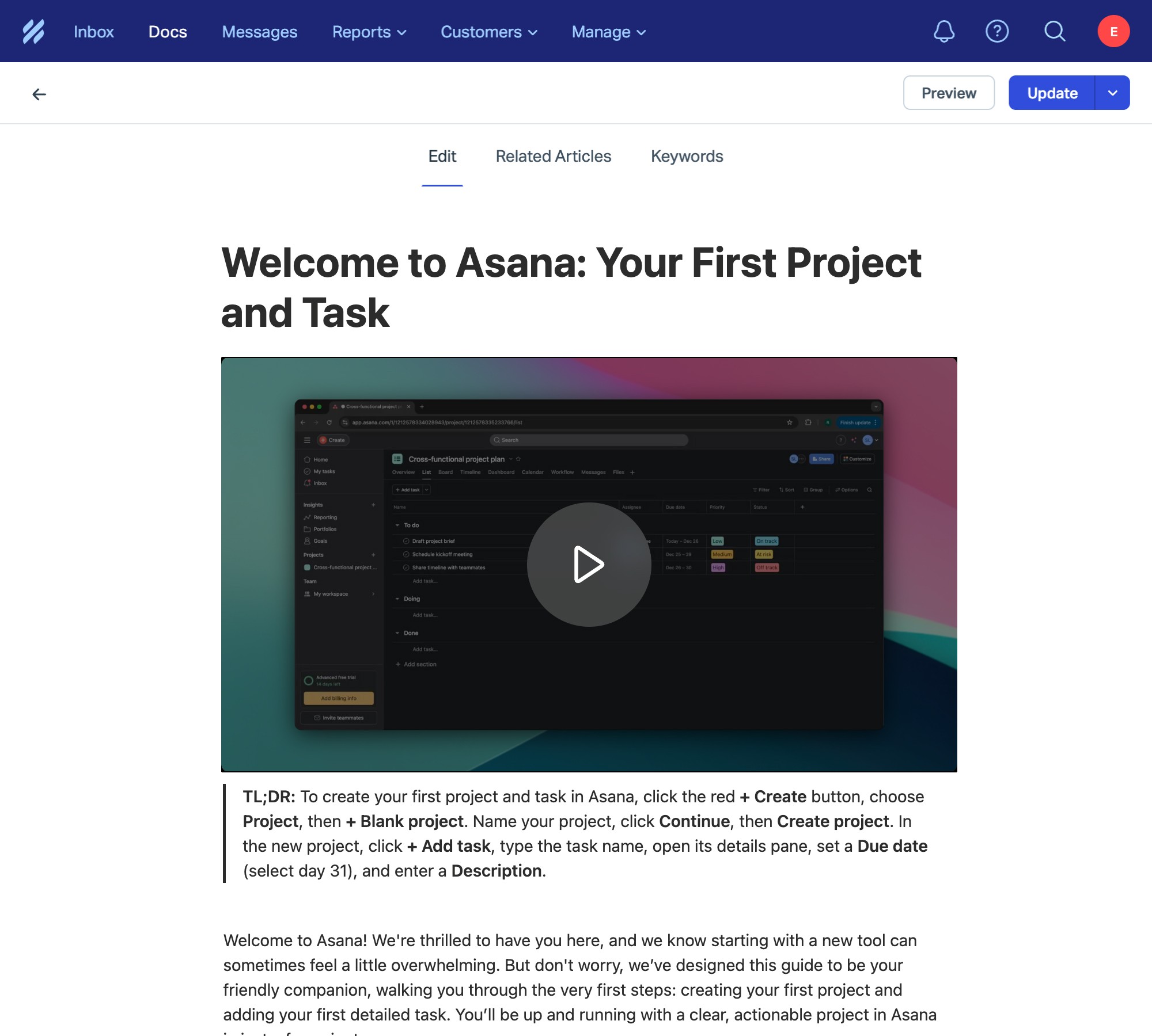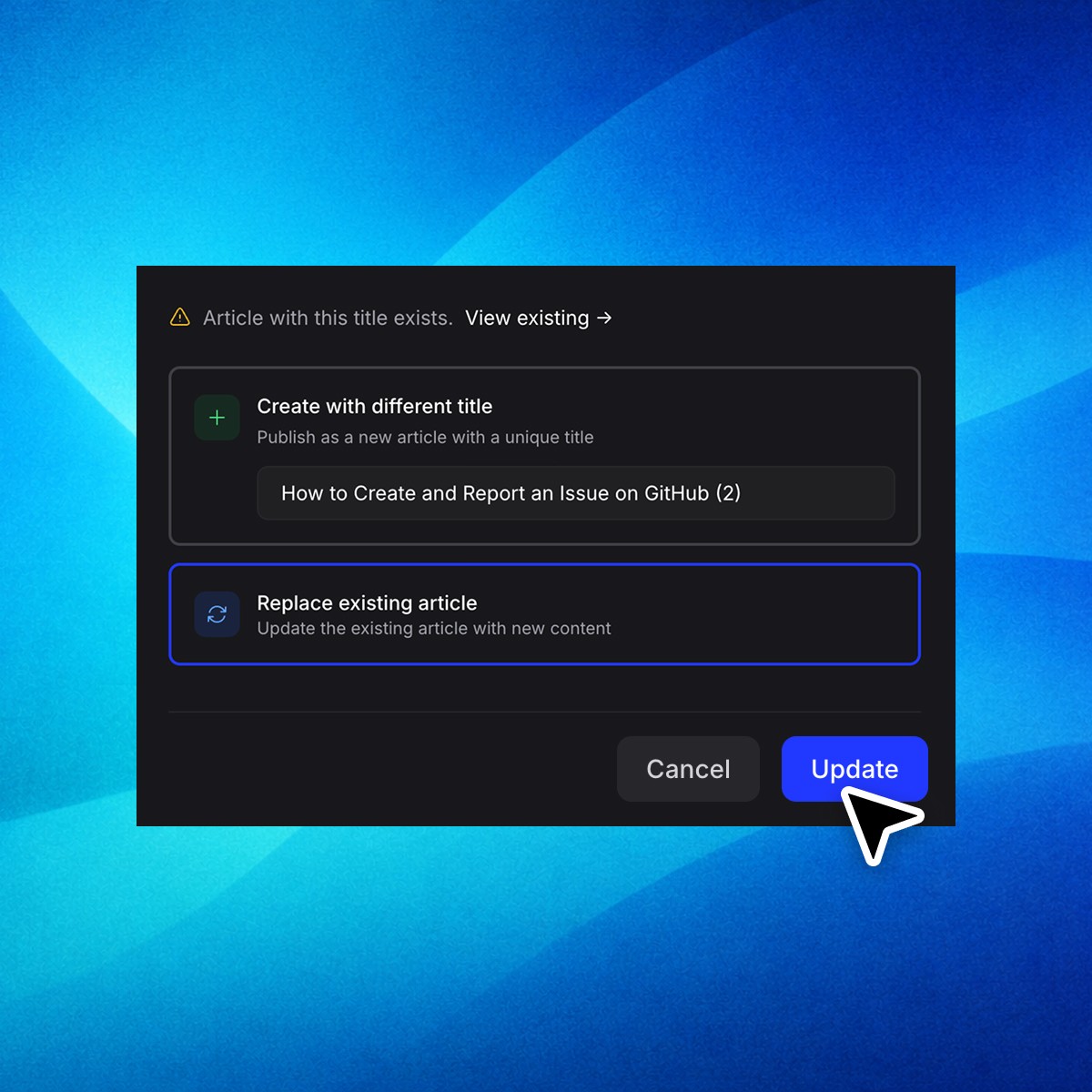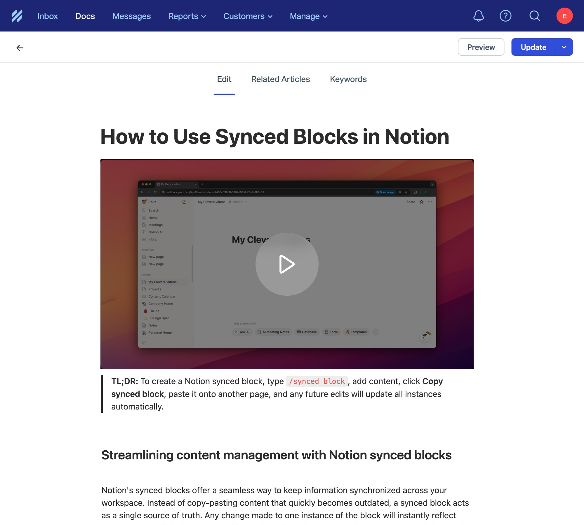 Update the video or article inside Clevera, then republish to the same location in Help Scout without creating duplicates or broken links.
