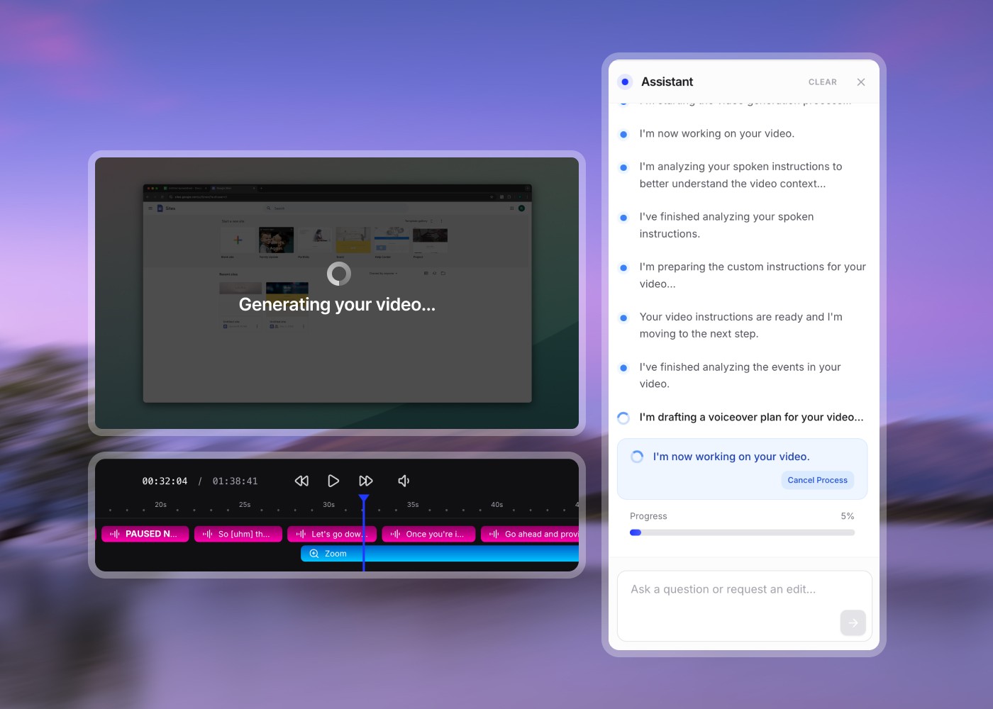 Clevera identifies every important click, form fill, and UI transition and adds zooms automatically. The moments that matter get the emphasis they deserve.