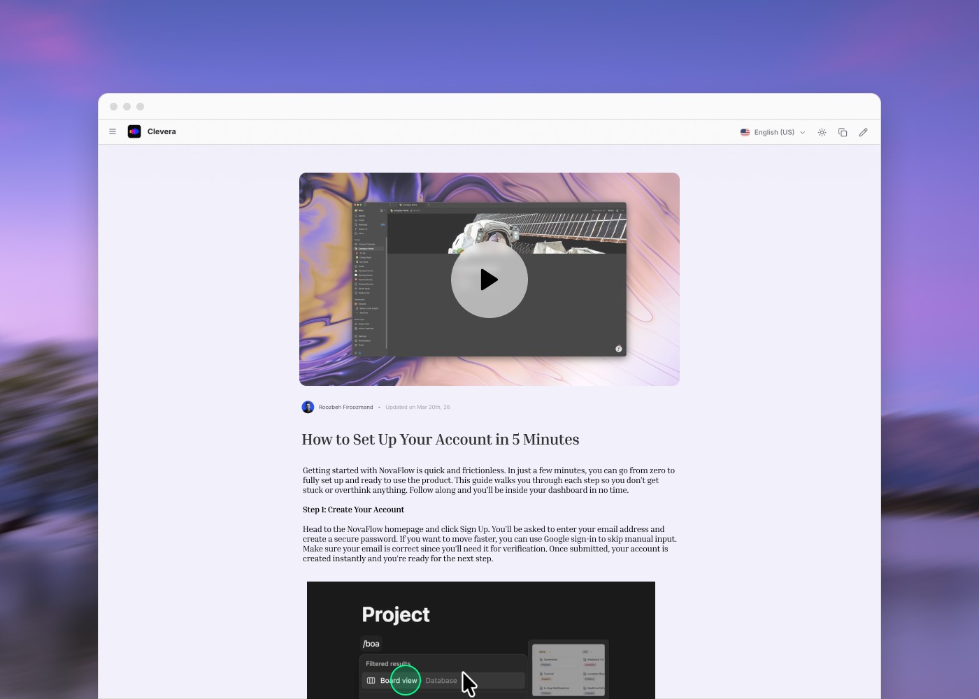 Record your screen once. Clevera turns it into a narrated tutorial video and a step-by-step help article at the same time — ready to embed in your help center, Zendesk, or Intercom in minutes.