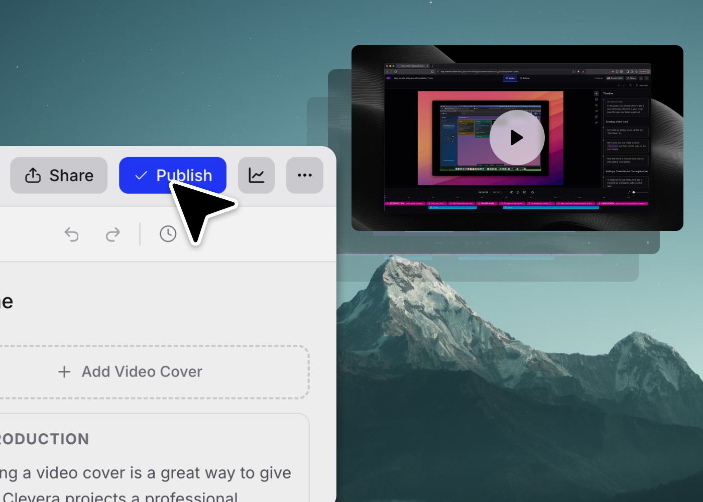 Record the product walkthrough. Clevera produces a polished narrated video and a written article in minutes — so your launch assets are ready before the announcement goes out.