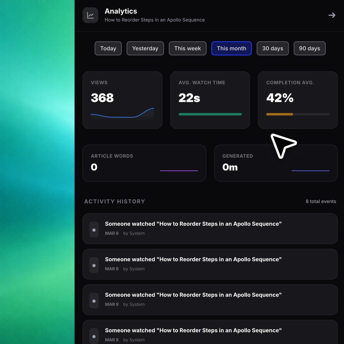 Once your video is ready, publish it wherever it belongs. Export a clean MP4 when you need a file, or share it directly to your help center, docs, or internal tools.